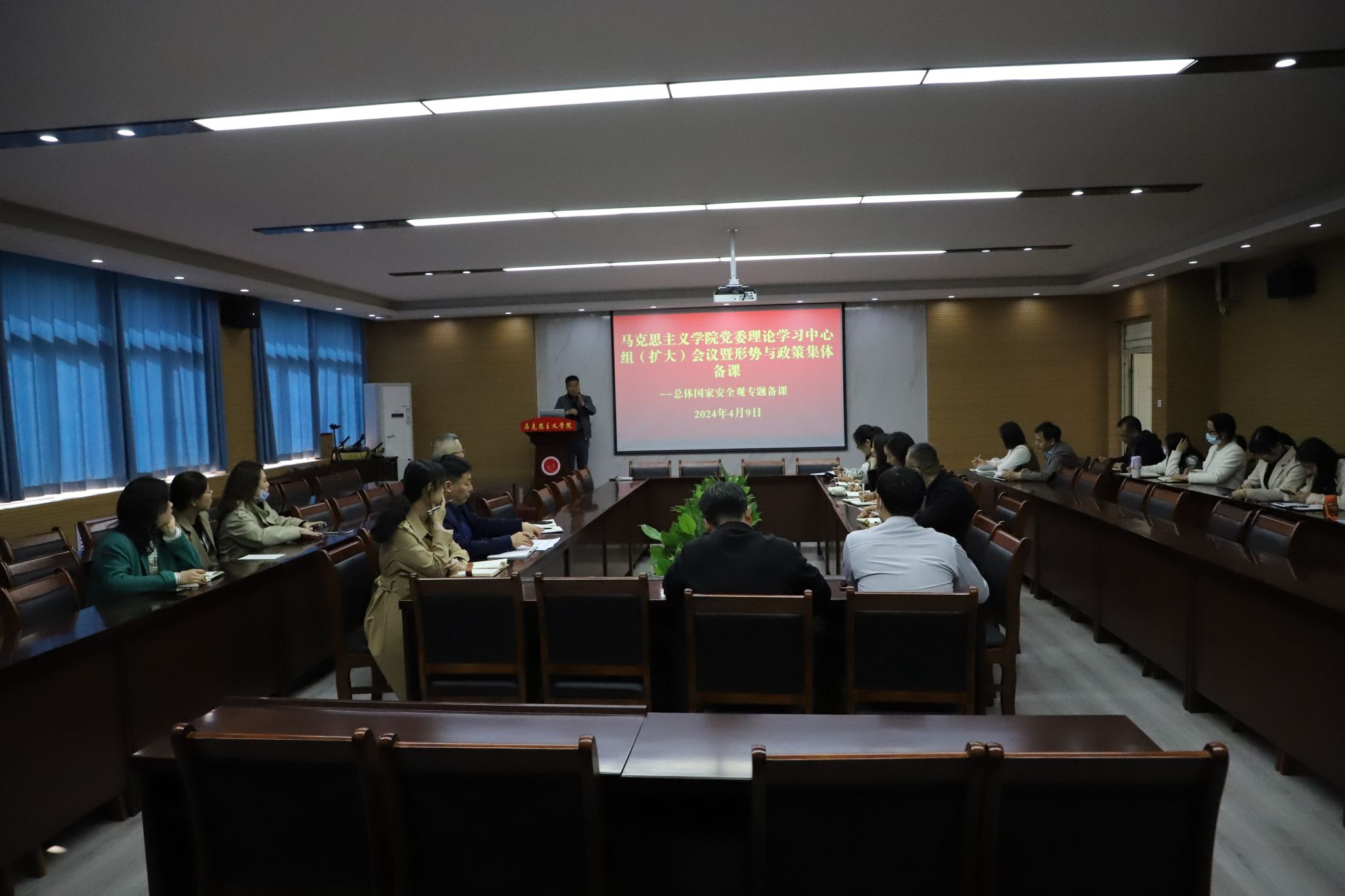 在3511会议室召开党委理论学习中心组(扩大)学习会暨形势与政策总体国家安全观集体备课会。学院领导班子、各党支部书记、科室主任及形势与政策全体专兼职教师参加集体学习。会议由学院党委书记李海涛主持。