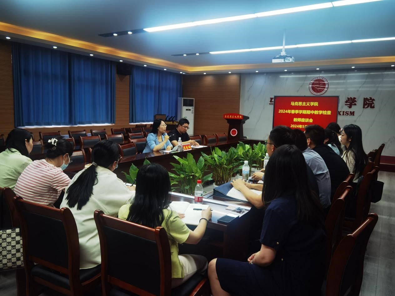 根据学校《关于开展2023-2024学年第二学期期中教学检查工作的通知》,于5月9日和10日分别召开了学生座谈会和教师座谈会,校督导专家戴晓鹂老师、马院教师代表和各专业学生代表参加会议。