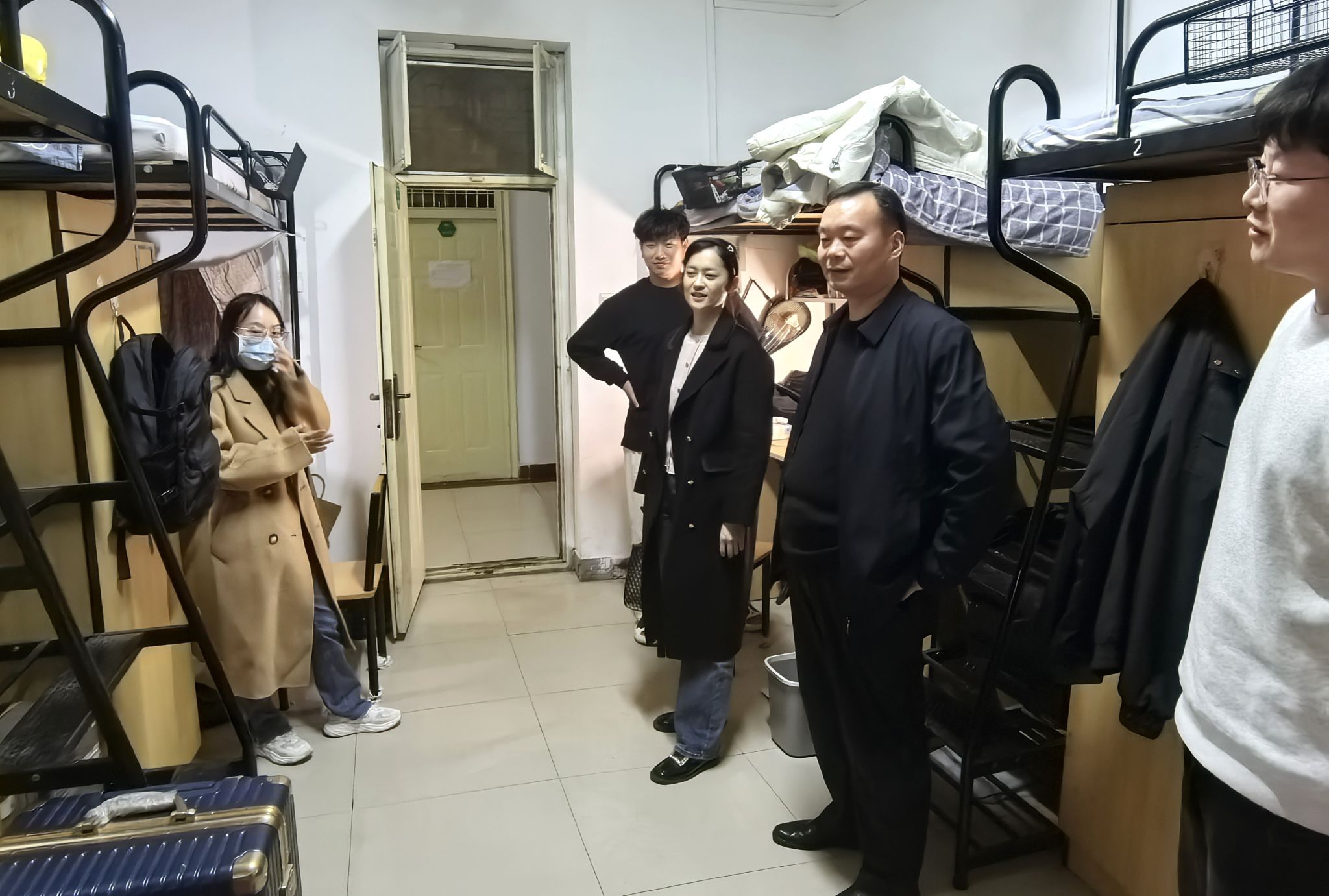 党委书记李继周、副书记吴若旻及班主任深入勤园社区学生宿舍进行走访调研。