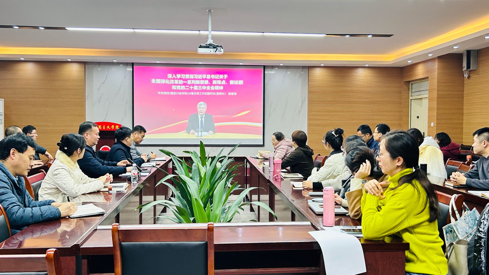 在3511会议室举办科级及以下干部党员党的二十届三中全会精神专题培训班。学院班子成员、全体党员参加培训,由党委书记李继周主持。