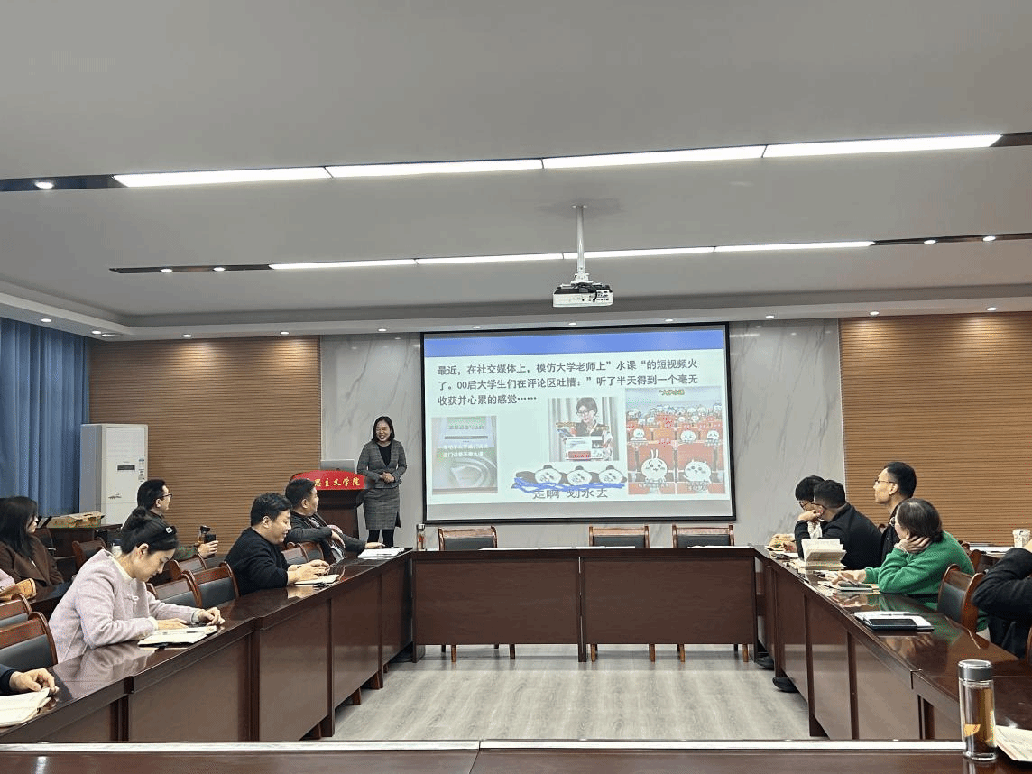 在3511会议室举办“思政课教学技巧创新与实践”系列专题讲座。本次讲座特邀河南省本科高校教师课堂教学创新大赛一等奖获得者吕娜老师主讲,院长李海涛主持,学院全体教师参与。