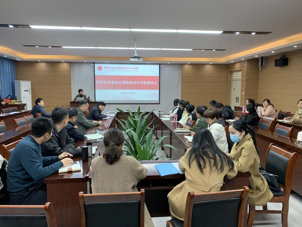 在3511会议室召开2025年国家社科基金项目后期资助项目专题辅导会。会议邀请李本松教授和杨丽教授为全院教师做经验分享与培训指导。学院有意申报该项目的教师参加了会议。会议由院长李海涛教授主持。