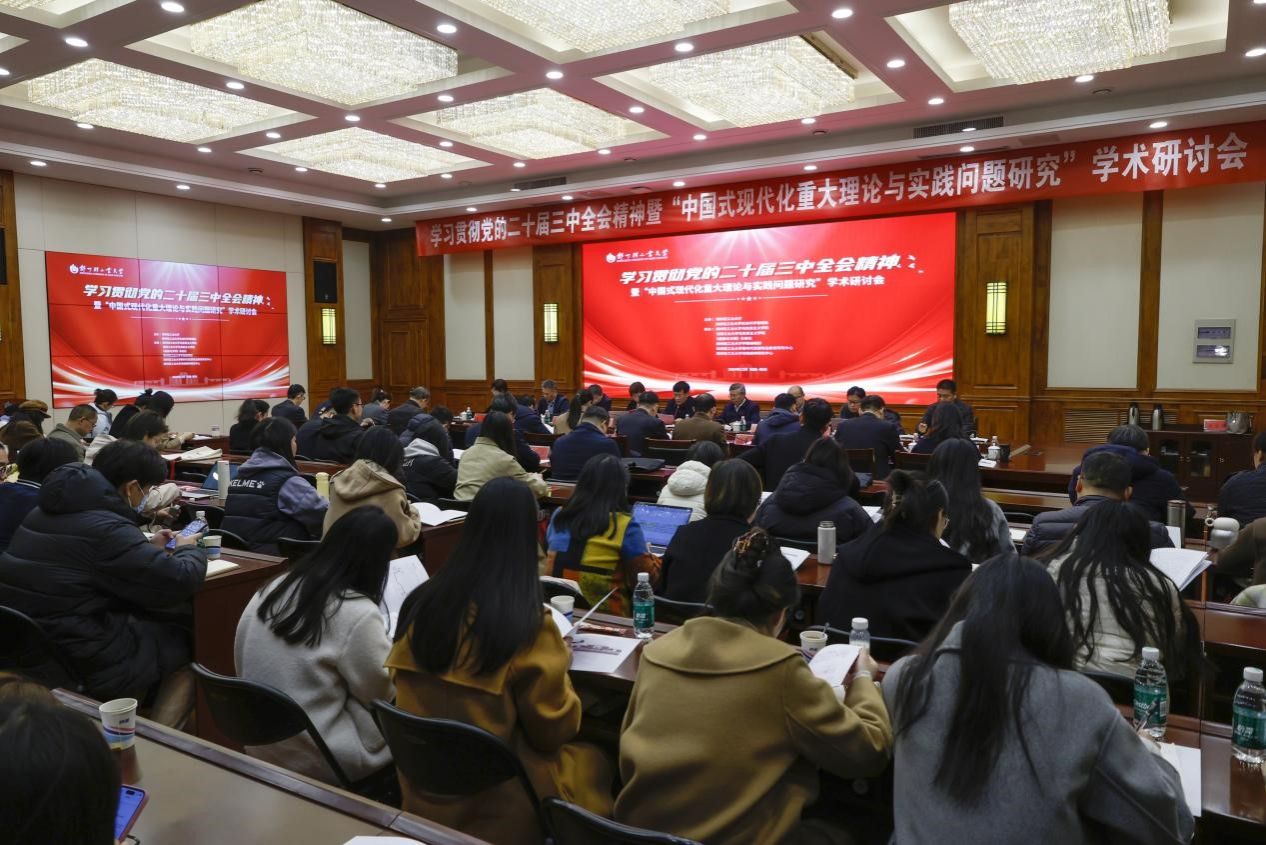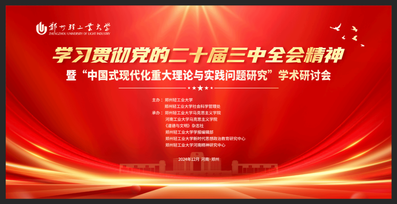 联合承办的“学习贯彻党的二十届三中全会精神暨‘中国式现代化重大理论与实践问题研究’学术研讨会”在郑州轻工业大学科学校区双创中心第一会议室举行。