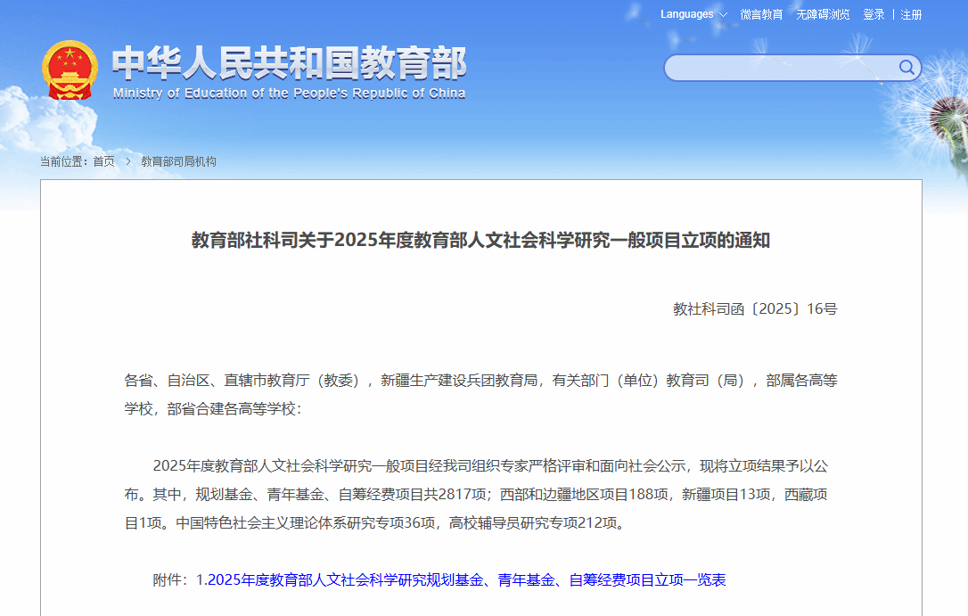 近日,教育部社科司公布了2025年教育部人文社会科学研究项目立项名单,H动漫