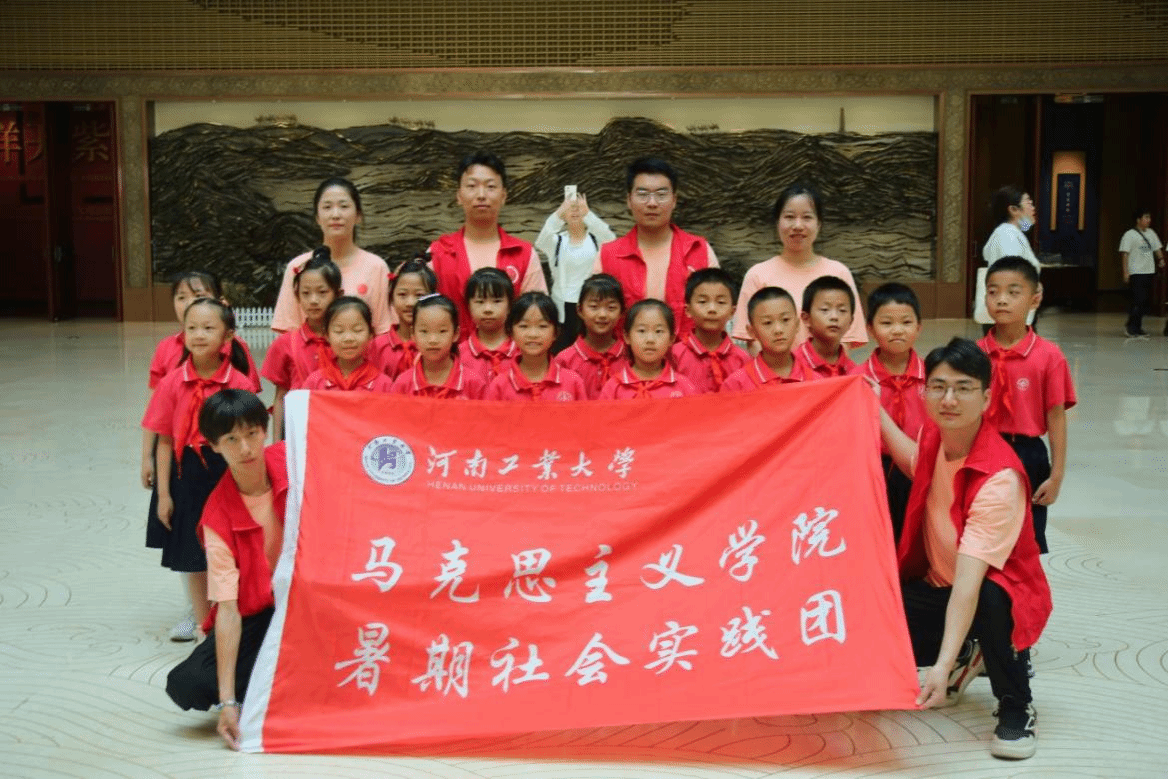 文物是历史的信物,博物馆珍藏着城市的记忆。开封作为八朝古都,是一座历史悠久、底蕴厚重的城市。开封博物馆运用了许多数字技术,将黄河泛滥的历史、两宋文化的灿烂、经典事件的脉络一一展开于观众眼前,真正实现了科技与文化的交相呼应,同向同行。在参观开封博物馆过程中,小队成员主动为小学生讲解开封博物馆的建造历史及文化底蕴,普及了科学知识,进行了友好的交流,以“大手牵小手”的积极行动,有效践履了大中小学思想政治教育一体化思想。